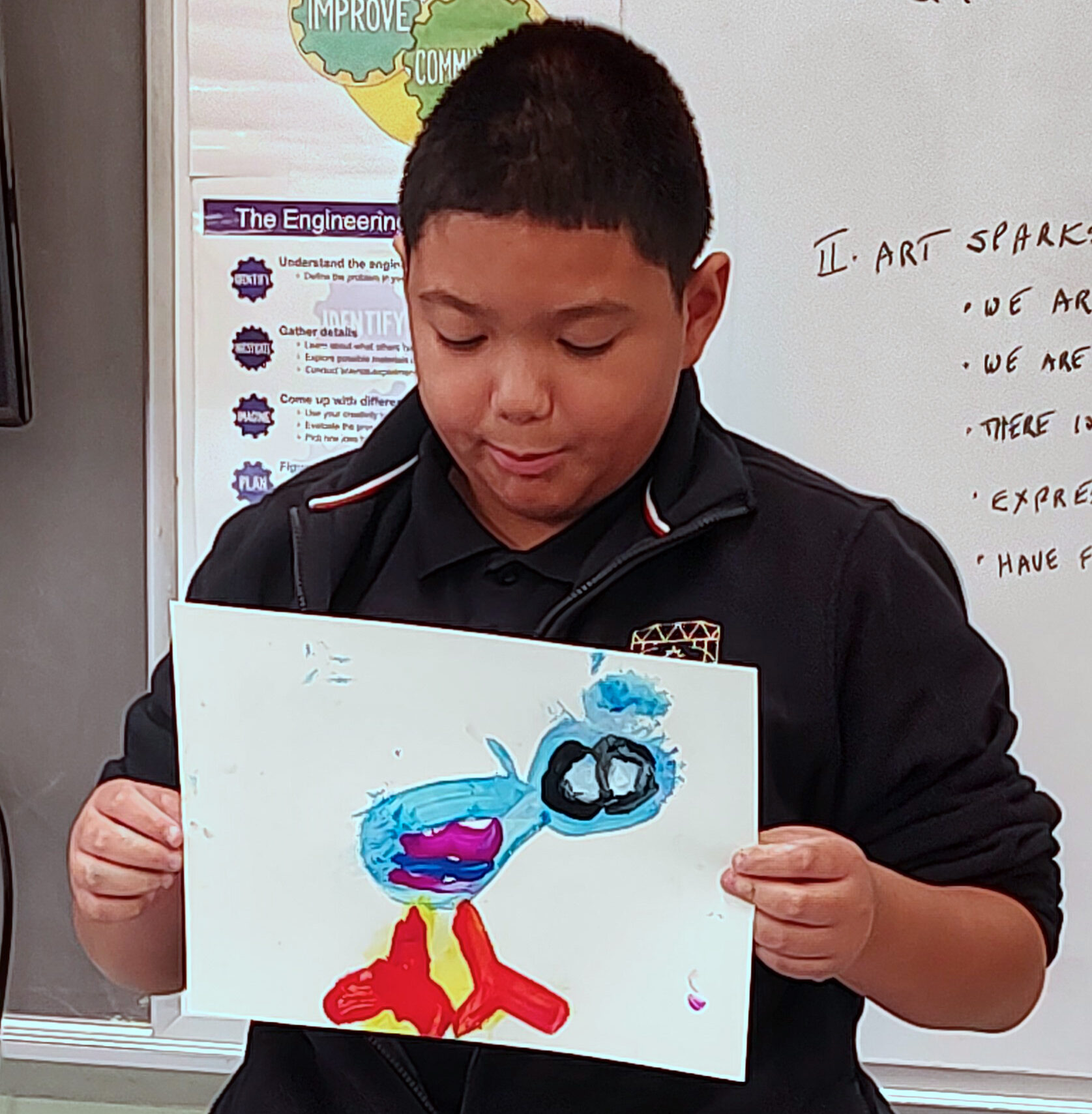 Art Sparks Creativity and Wellness Program began recently at San Miguel Academy in Newburgh. In introducing the course, artist educator Imogene Drummond explained her goal to help the fifth graders develop their individual creativity and to understand that each person is worthwhile and creative. Students are invariably surprised when told that as art is an expression of themselves, there is no right or wrong answer–so they cannot make a mistake! They are also surprised to hear that Imogene wants them to have fun!