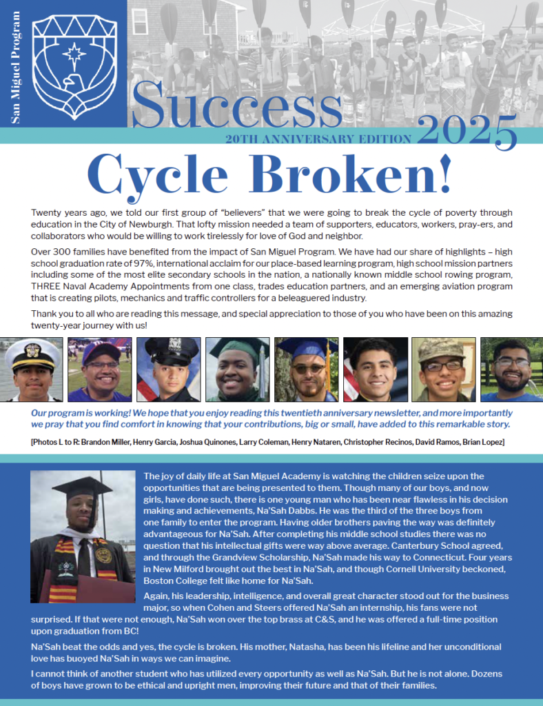Newletters Newsletters 2025 Success Newsletter Your support makes the journey possible for our students to break the cycle of poverty through education. Donate Graduation Newsletter Archive 2023 Graduation Newsletter 2022 Graduation Newsletter 2021 Graduation Newsletter 2020 Graduation Newsletter 2019 Graduation Newsletter 2018 Graduation Newsletter 2017 Graduation Newsletter Part 1 2017 Graduation Newsletter Part 2 2015 Graduation Newsletter 2014 Graduation Newsletter 2013 Graduation Newsletter Alumni & School Newsletter Archive 2024 Success Newsletter2023 Alumni Update: Success!2022 Alumni Update: “I know I can do it!”2021 Alumni Update: Graduate Support Beyond High School2020 Alumni Update: Calm in the Storm2018 School Update Newsletter: Success through Partners2018 Alumni Update: How are doing?2017 Alumni Update: How are we doing?2016 School Update Newsletter: 18+20=22016 Alumni Update: To Lead is to Serve2015 Alumni Update: A Reason to Believe2015 School Update Newsletter: The Maker Movement2014 Alumni Update: Perseverance